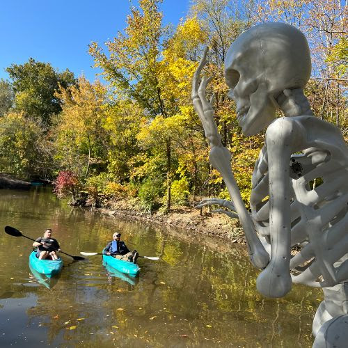 Be prepared for a scare! You are invited to join the spooky, fun, one-of-a-kind, Haunted Paddle Trip! The 9am paddle trip is sold out! We have added a second trip, on Saturday, October 18 at 1 pm. Paddle from Dearborn Hills Golf Course to Ford Field Park and experience the spooky scenes created by Friends of the Rouge and community partners! See the Bog Monster, the Killer Clown, and the Rouge Witches. Join in the haunted fun, if you dare!