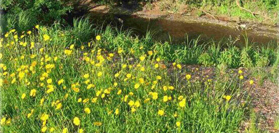 A cost effective method to reduce streambank erosion and save riverfront property is to plant deep-rooted native wildflowers and grasses. The fibrous root systems create a living mesh that will help hold the soil in place. Native trees and shrubs provide shade in warm months, which is important to keep water temperature from rising and dissolved oxygen levels from falling too low to support life in the stream.