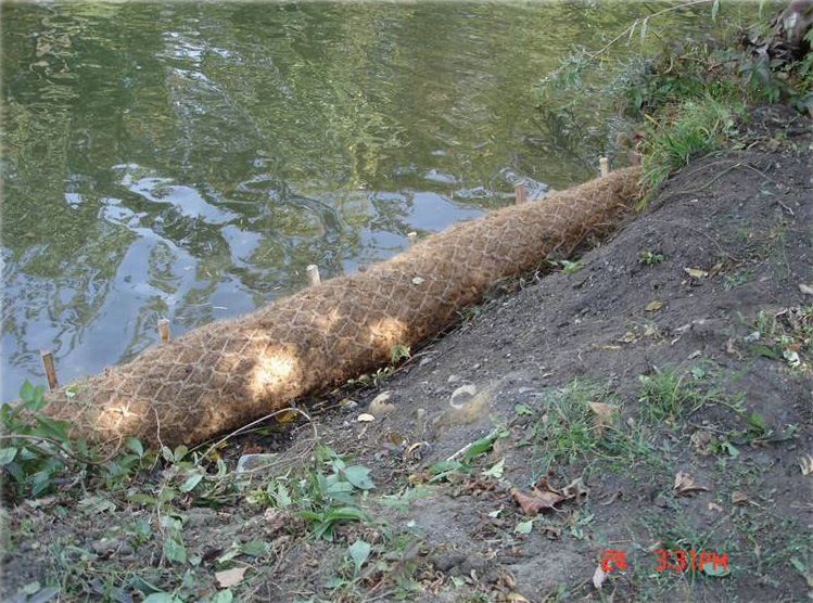 Coir logs or large woody debris can be staked in to reduce localized erosion at the toe of the bank. This may be necessary to allow native vegetation to become established in erosion prone areas. Erosion control blankets may also be necessary to protect plantings from washing away in high water. A permit from MDEQ is required before this work can be completed. More information: Woody Debris Management 201